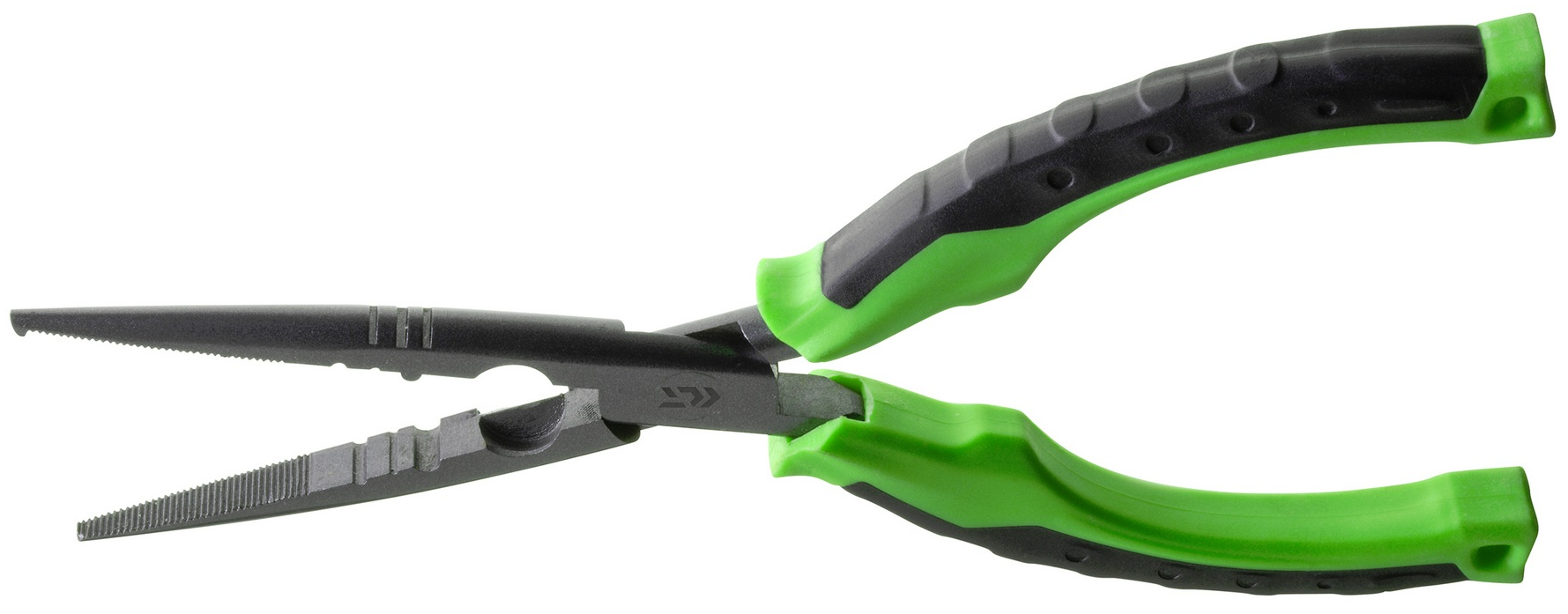 Vielseitige und langlebige Angelzangen mit ergonomischem und griffigem Griff. Damit können Sie Köder einfach aus dem Maul des Fisches entfernen, Schnur oder Draht schneiden und Ösenringe anbringen. Teflonbeschichtung verhindert Rost.