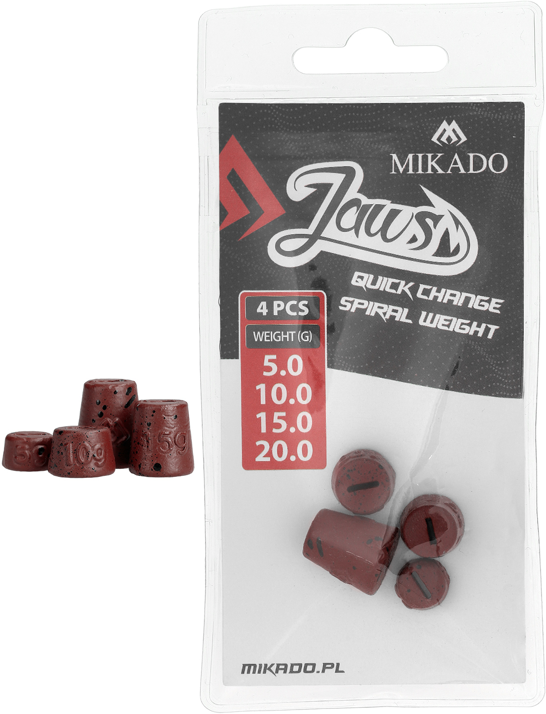 Professionelle Gewichte für Jaws Quick Change Spiral-Systeme, die es ermöglichen, das Gewicht am Jig schnell zu wechseln. Im Paket sind 4 verschiedene Gewichtsmöglichkeiten enthalten - 5g, 10g, 15g und 20g.