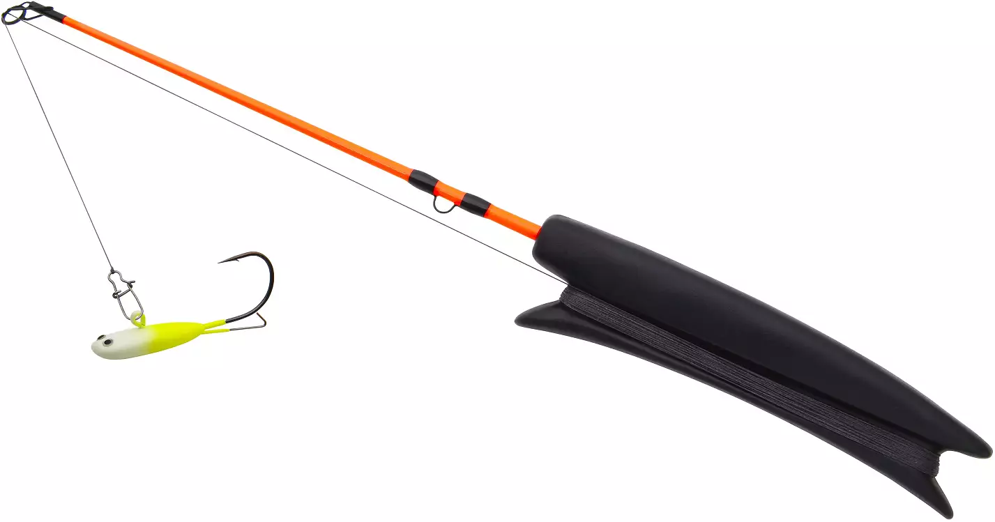 Die leichte, aber langlebige Angelrute ist aus frostbeständigen Materialien gefertigt und verfügt über einen rutschfesten Griff, der auch bei kalten Bedingungen einen guten Halt bietet. Die Köderhalterung ermöglicht einen schnellen und mühelosen Wechsel des Köders.