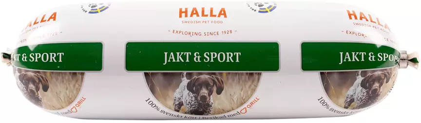 Halla Jakt & Sport ist eine schmackhafte und nährstoffreiche Vollnahrung, die speziell für aktive und arbeitende erwachsene Hunde entwickelt wurde. Das Futter wird in Schweden aus sorgfältig ausgewählten Rohstoffen – Fleisch, Innereien, Gemüse und kaltgepresstem Rapsöl – hergestellt.