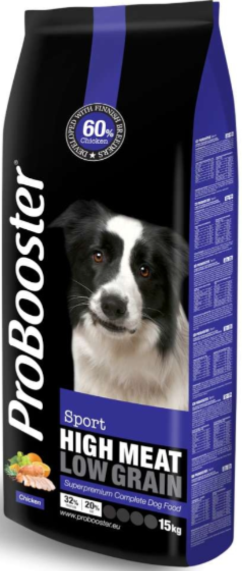 Pro Booster Adult Sport Chicken 15kg VOLLSTÄNDIGES FRESSEN FÜR ALLE RASSEN VON AKTIVEN HUNDEN ProBooster Sport wurde speziell für die anspruchsvollen Ernährungsbedürfnisse aktiver und arbeitender... Mehr lesen