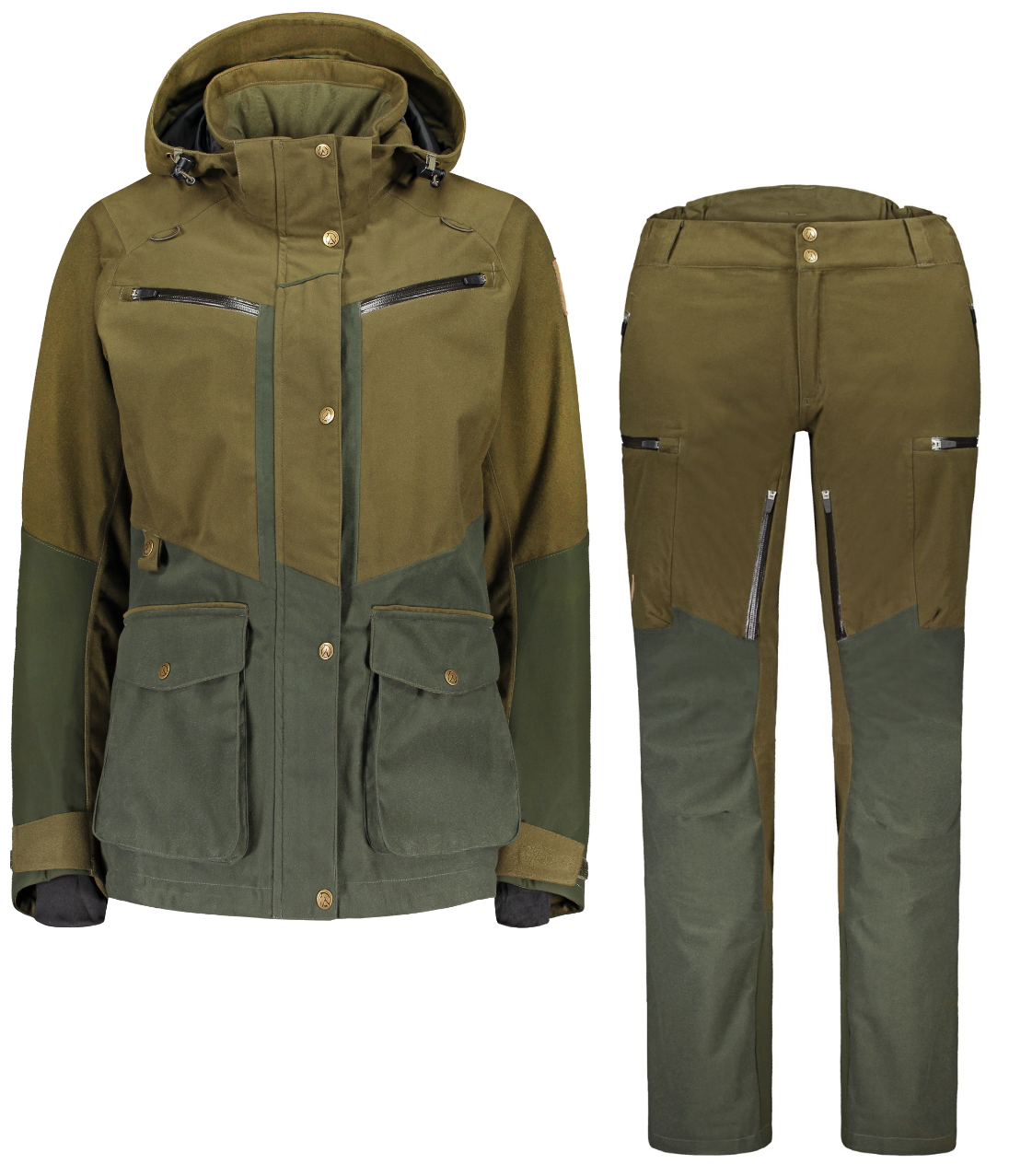 Entwickelt und getestet in FinnlandLeiseWind- und wasserdicht bis 10.000mm.VerbundnahtHervorragende Atmungsaktivität 5000g/m2/24hStrapazierte Bereiche verstärktAbnehmbarer und verstellbarer Hut5 Außentaschen in der Jacke4 mit Reißverschluss versehene Taschen in der Hose undVentilationsreißverschlüsse unter den Achseln und an den InnenschenkelnWindstopper an den ÄrmelabschlüssenElastischer Bund an der HoseSchneeschutz an den BeinendenBefestigungsknöpfe für Träger2 Jahre Garantie