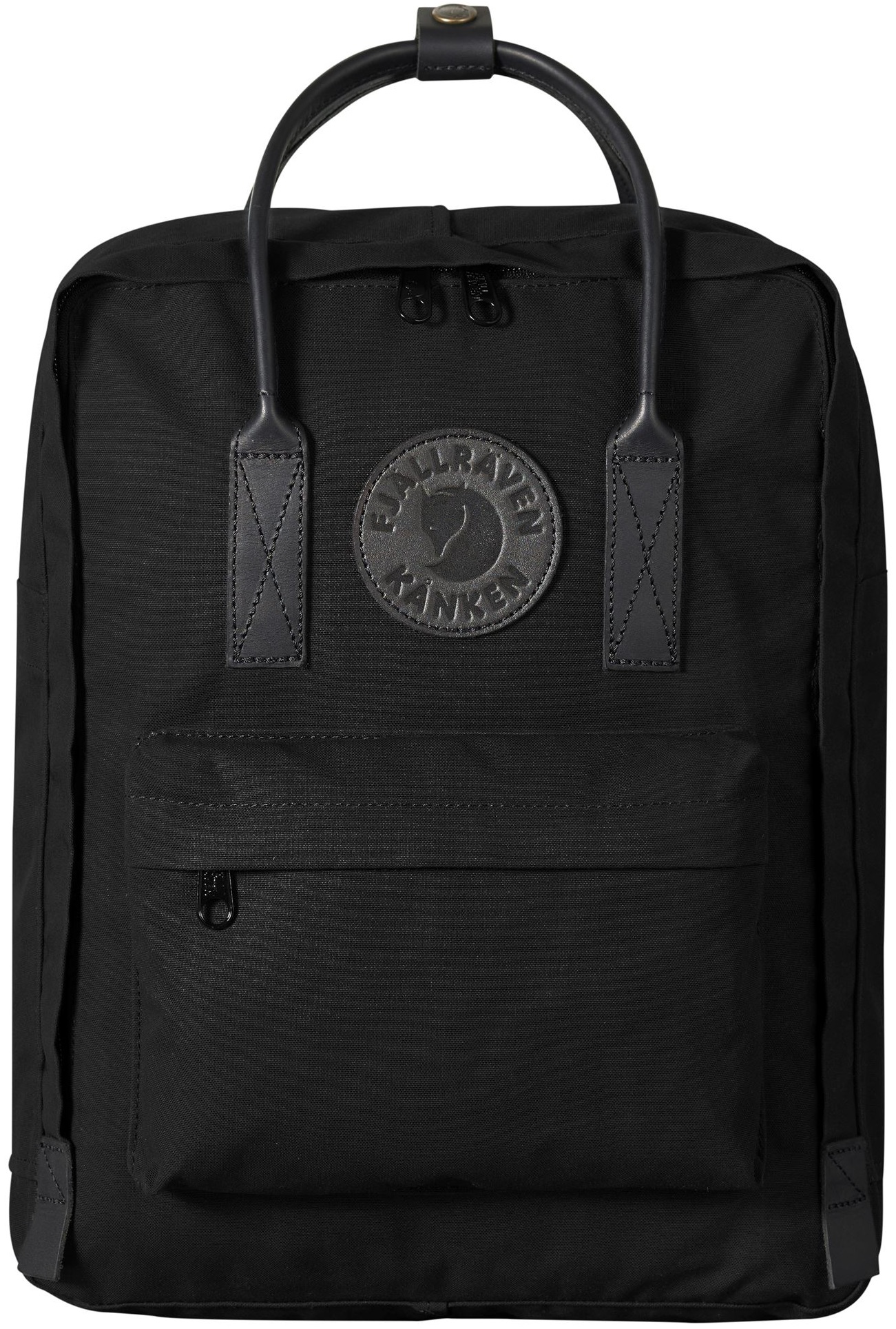 Schwarze Version des Kånken No. 2 Rucksacks aus G-1000 HeavyDuty Material mit Lederelementen. Sitzunterlage aus G-1000 HeavyDuty Material. Zwei Seitentaschen und eine Reißverschlusstasche vorne. Visitenkartenhalter innen. Details und Griffe aus schwarzem Leder.TECHNISCHE DATEN