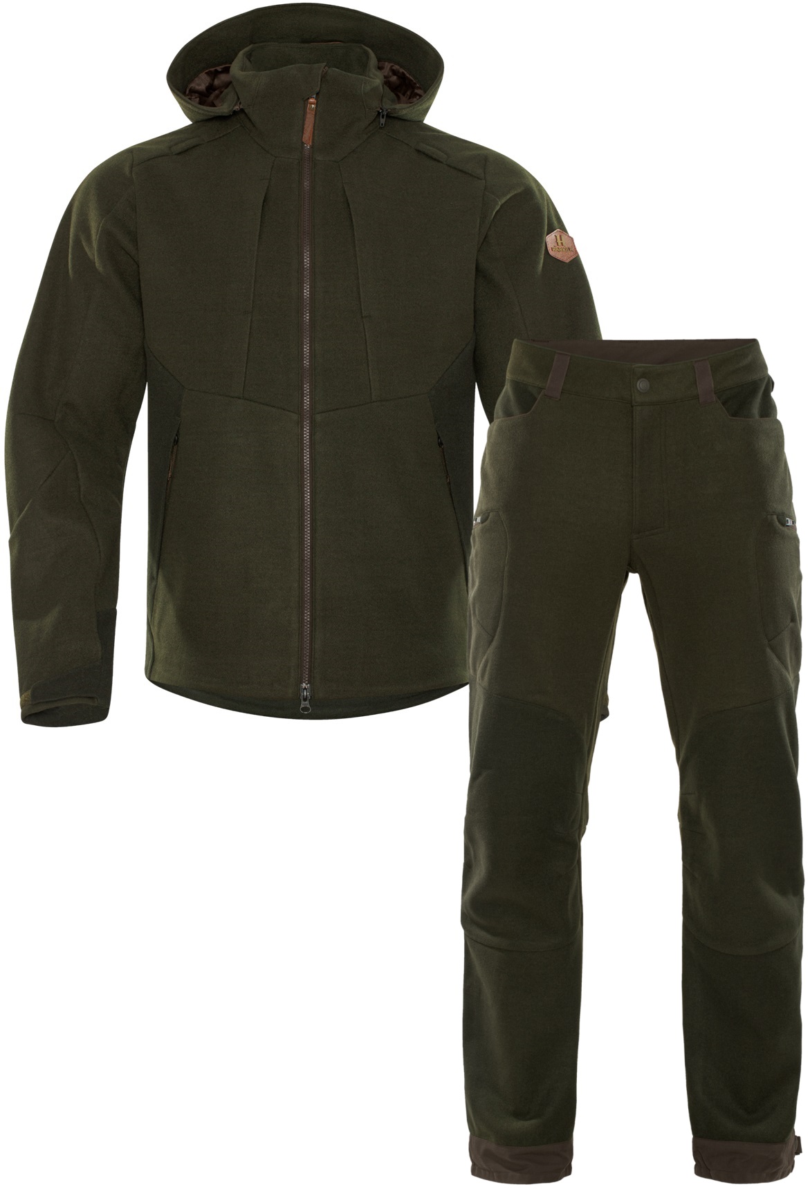 Der Metso Hybrid ist ein stilvoller Jagdanzug, hergestellt aus elastischem und extrem leise schneidendem Wollmix. Der Anzug eignet sich hervorragend für Pirschjagden und die Herbstjagd. Neben der natürlichen Temperaturregulierung und Wasserabweisung des Wollmaterials verfügt die Metso Hybrid Jacke über eine wasserdichte Membran an den Armen und am Rücken, während die Hose ab den Knien ebenfalls eine Membran hat. Dies bedeutet, dass Sie das Outfit unter verschiedenen Bedingungen tragen können, während es gut atmet und sehr angenehm zu tragen ist.