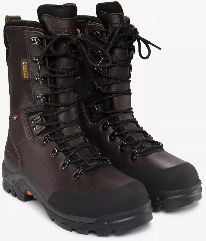 Der Viking Hunter GTX ist ein lederner Wander- und Jagdschuh, der überlegenen Halt für stundenlange Wanderungen im Wilden bietet. Die Schuhe sind aus strapazierfähigem, hochwertigem Vollleder gefertigt und mit einer leichten GORE-TEX®-Membran ausgestattet, die Wasserdichtigkeit bei nassen Bedingungen garantiert. Die weite Passform erhöht den Tragekomfort, und der Gummizehenschutz verbessert die Haltbarkeit sowie den Schutz gegen Stöße von Steinen und Wurzeln. Die UGC®-Laufsohle bietet hervorragenden Grip in abwechslungsreichem Gelände.