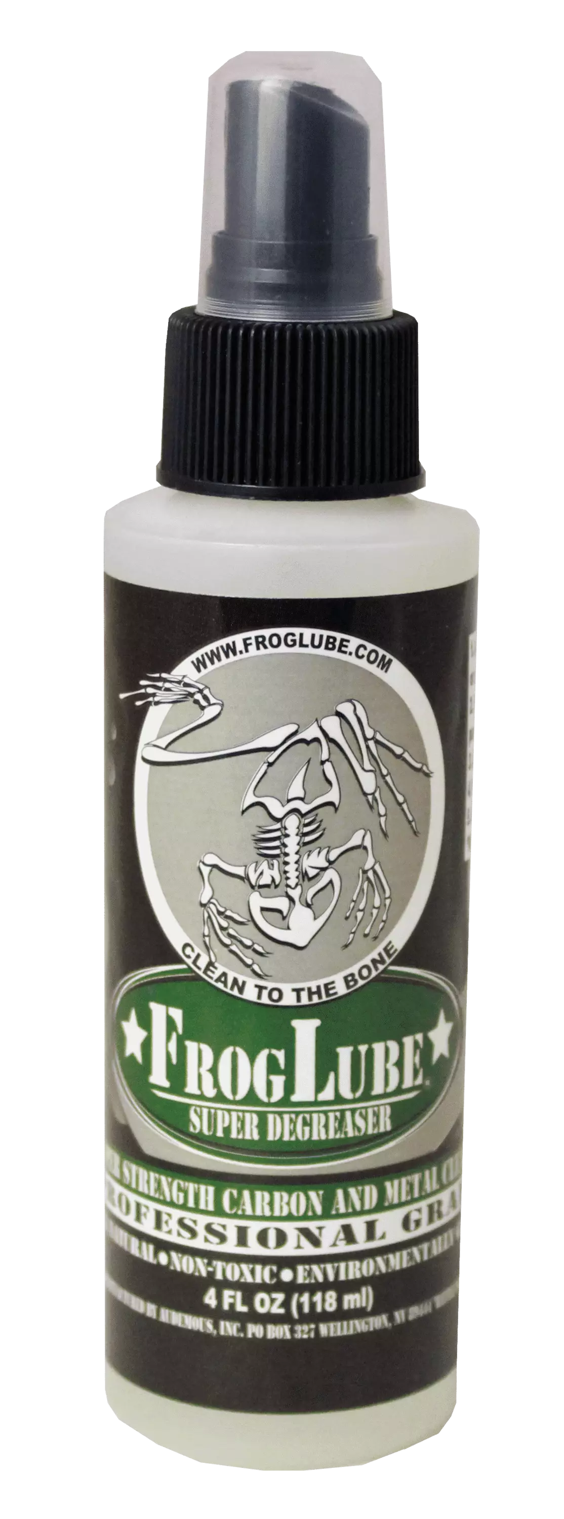 FrogLube Super Degreaser ist ein äußerst effektives Reinigungsmittel, das entwickelt wurde, um hartnäckigen Schmutz, Fett sowie Schwarzpulverablagerungen schnell und mühelos zu entfernen. Es funktioniert hervorragend als Vorreiniger, bevor das Schmiermittel aufgetragen wird, und stellt sicher, dass die behandelten Oberflächen vollkommen sauber und bereit für eine optimale Schmierung sind.