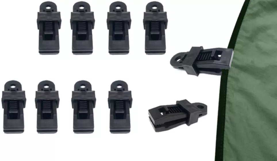 Der Befestigungsclip von Nortrek kann vielseitig beim Zelten und Wandern eingesetzt werden. Praktisch für Planen, Wohnmobile, Boot- oder Anhängerdeckel und andere Anwendungen.