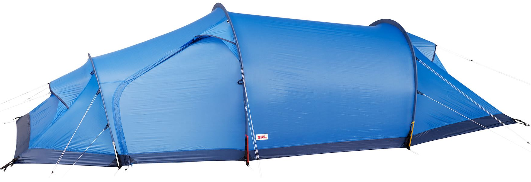 Leichtes Zelt für ganzjährige Wanderungen außer unter extremen Bedingungen. Die Außenzeltplane besteht aus Fjällrävens neuem, hochwertigen TripleRip-Nylon, dessen innovative Struktur zwei unterschiedlich dicke Stoffe kombiniert. Die am meisten beanspruchten Bereiche nahe dem Boden sind mit einem haltbareren, dichter gewebten Stoff verstärkt, während in weniger beanspruchten Teilen leichteres Material verwendet wird. So wird das Zelt sehr langlebig, während das Gewicht dennoch niedrig bleibt. Die Außenzeltplane und das Innenzelt sind miteinander verbunden, sodass das Innenzelt während des Aufbaus trocken bleibt. Die Bogenkanäle sind außen angebracht und farbcodiert, um den Aufbau zu erleichtern. Sie sind breit genug für Doppelstangen (Zubehör) für anspruchsvolle Bedingungen. Große, hoch sitzende Belüftungsöffnungen ermöglichen eine gute Luftzirkulation. Alle Öffnungen im Innenzelt haben dichte Insektennetze, die die kleinsten Insekten fernhalten. Die Öffnungen des Außenzelts können vollständig oder teilweise mit dem Außenzeltstoff geöffnet oder geschlossen werden. Bei warmem Wetter kann die Tür in einer halb geöffneten Position fixiert werden, um die Belüftung zu verbessern, ohne dass Regen ins Innenzelt eindringt. Der YKK-Reißverschluss des Außenzelts hat eine automatische Verriegelungsfunktion, sodass der Wind ihn nicht aufschieben kann. Das Innenzelt hat zusätzlich zu der Stofftür auch eine dichte Insektennetztür.