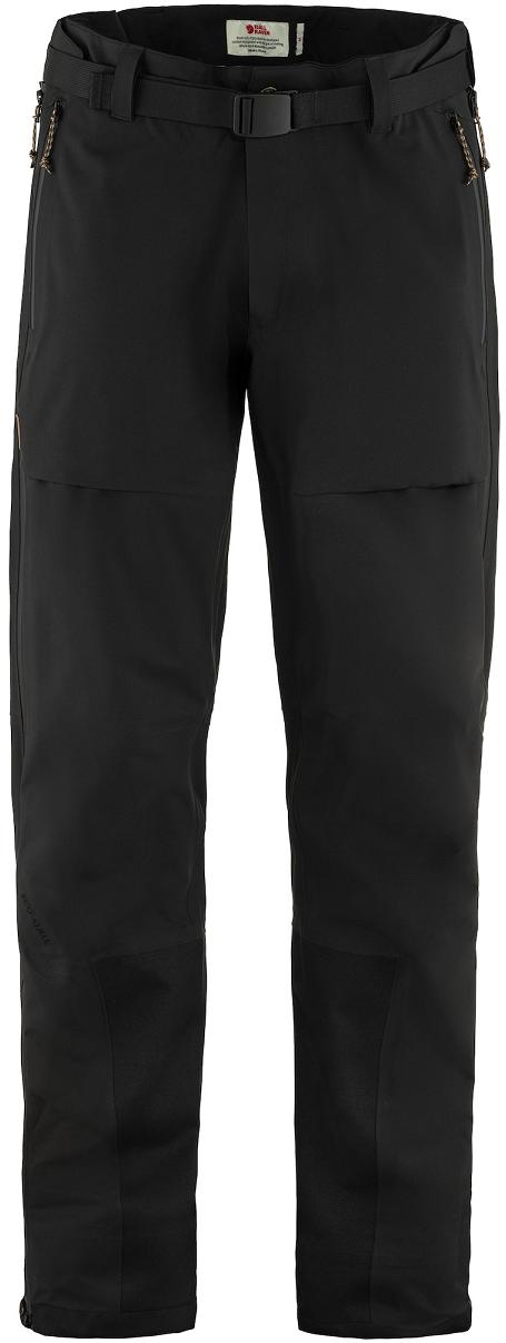 Der Schnitt ist sorgfältig gestaltet, und die vorgeformten Knie und der Gesäßbereich erleichtern die Bewegungen. Die Hose ist so gestaltet, dass sie über Wanderhosen aus G-1000-Material getragen werden kann. Lange, zweiwege wasserfeste Reißverschlüsse an den Seiten lassen überschüssige Wärme entweichen und erleichtern das An- und Ausziehen. An der Taille befinden sich seitlich Klettverschluss und Gürtel. Die flache Gürtelschnalle drückt nicht unter einem Klettergurt oder einem Hüftgurt eines Rucksacks. In zwei Reißverschlusstaschen sind kleine Utensilien immer griffbereit. Cordura-Verstärkungen an den Beinenden und an der Innenseite der Unterseite der Beine schützen vor Abnutzung durch Schuhe und Steigeisen. Der Beinabschluss hat einen Knopf und ein verstecktes Zugband zur Breitenanpassung. Eco-Shell ist ein wasserdichtes, atmungsaktives und strapazierfähiges Shell-Kleidungsstoffmaterial mit fluorfreiem Oberflächenfinish. Eco-Shell besteht aus recyceltem Polyester (sowohl recyceltem als auch neuem) und alle während der Produktion und des Transports verursachten Emissionen sind klimaneutral kompensiert.