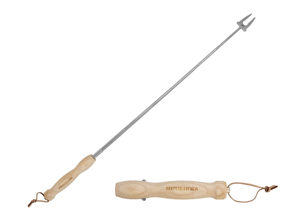 Der Muurikka Wurstspieß lässt sich einfach auf Ausflüge mitnehmen. Er lässt sich durch den teleskopierbaren Griff platzsparend verstauen. Länge geöffnet 80 cm und zusammengefaltet 20,5 cm. Lieferung mit praktischem Tragetasche.